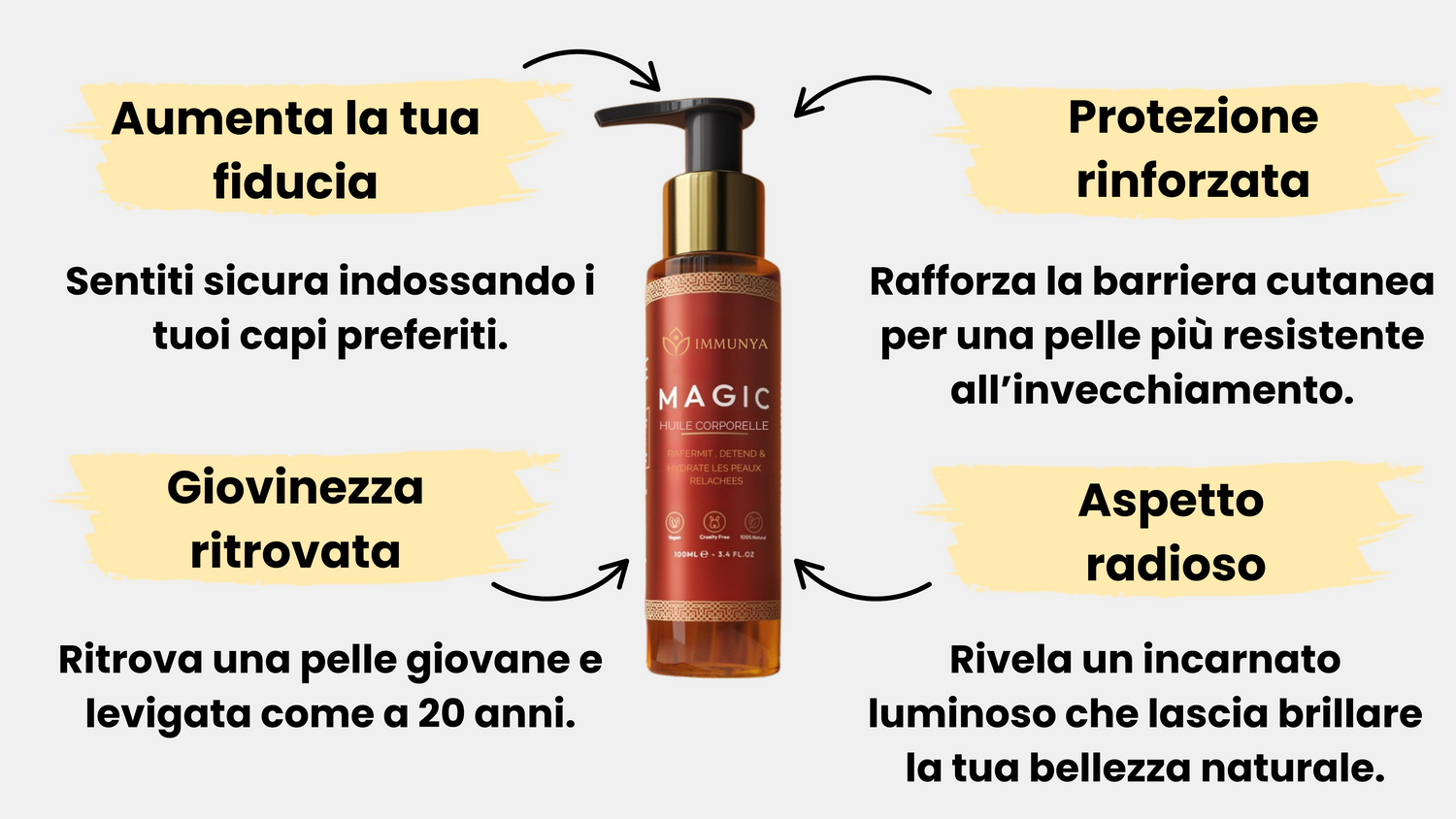 - Stimola il collagene naturale per una pelle liscia ed elastica